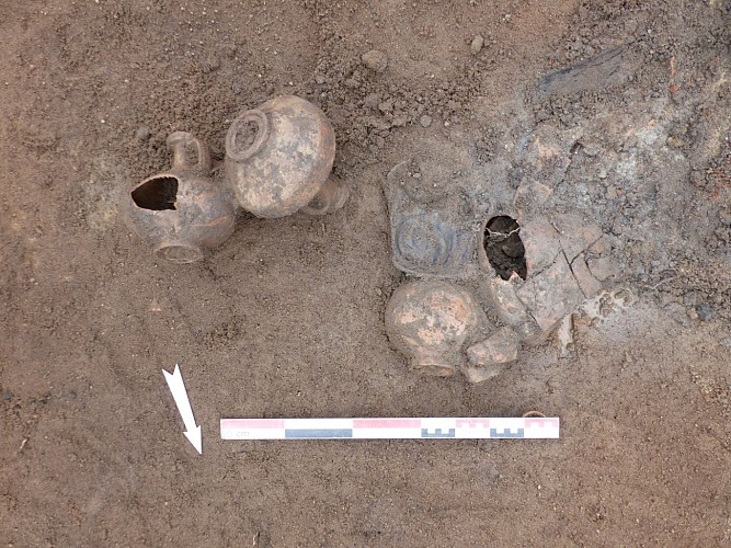 Une nouvelle fouille préventive réalisée par l’Inrap entre novembre 2024 et janvier 2025 a mis au jour un atelier de potiers de la première moitié du Ier siècle ; Des emplacements de tours de potiers ont été découverts, ainsi qu’un important fossé qui a livré des cruches de table en quantités gigantesques…
